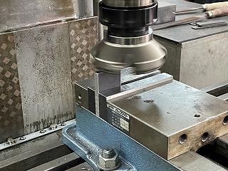 旋盤と違って材料が動きます 正面フライス(フルバック)で平面を