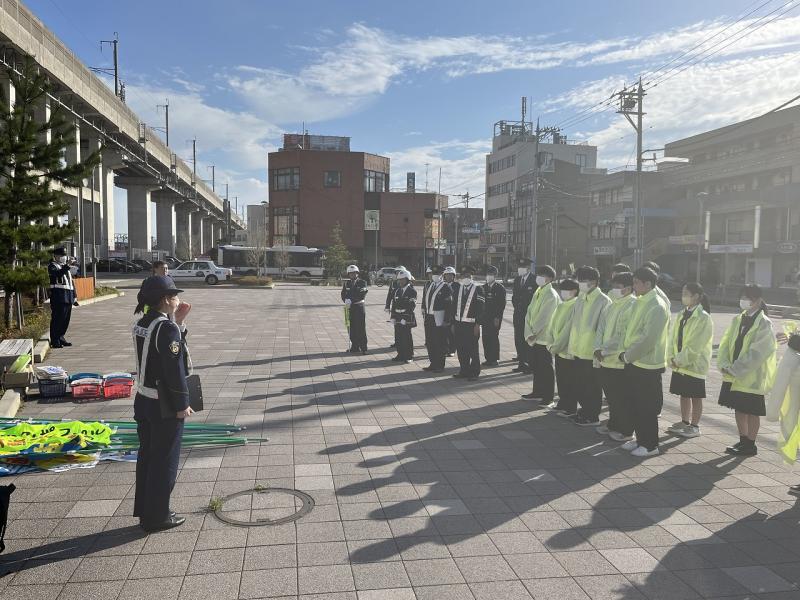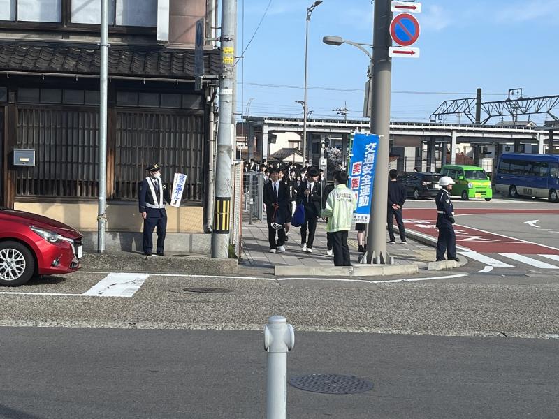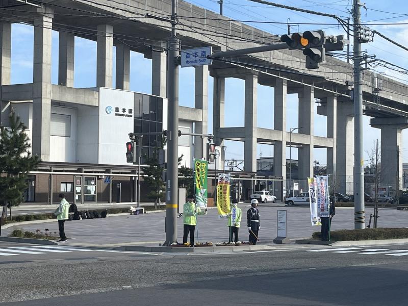 現在、春の全国交通安全運動期間中ということで、金沢東警察署や地元交通推進隊の皆さんと一緒に、森本駅前で活動させていただきました。
