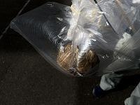 長い棒にビニール袋を取り付けて、蜂がいないことを確認しつつ、