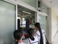 ▲中学生用のイスを用意する気遣い、素敵です ▲見学の終盤は台風の影響で雨模様… ▲北陵高校の特色ある施設を見学