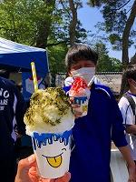 悔しかったけど、この笑顔です。終わった後のかき氷は格別!先輩からご馳走になりました。