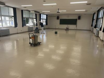 夏季休業中を利用し、学務員さんを通じて清掃・ワックスがけをしていただきました。