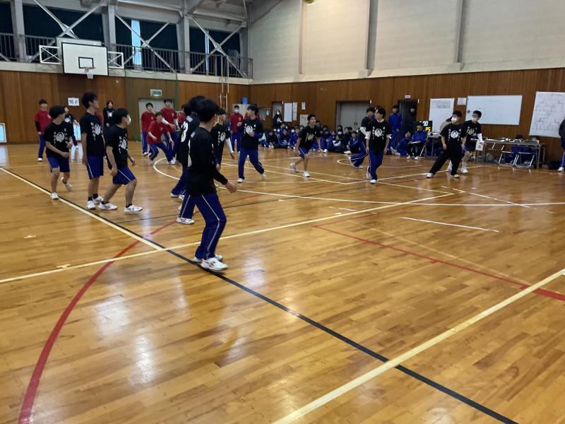 体育館で行った青春奪い、ドッジボール、台風の目はクラス対抗で行われ