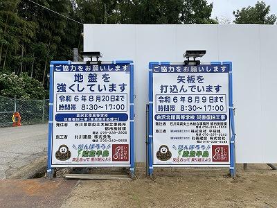地震で崩落したエリアの補強工事が始まりました。