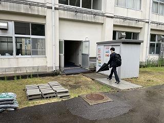 そこで、足元の安全を確保し、雨天時に限ってC棟裏のドアから