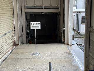 足元にはブロックを敷いて段差を無くすと 渡り廊下です。シャッターから右へ行くと