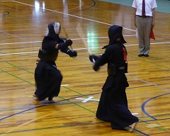 6月2日の個人戦では男子3名が出場しました。1年生2名は1回戦敗退でしたが、一人は開始同時にこて1本をとり、試合を優勢にしていただけに、残念な試合結果となりました。今後に期待したいと思います。3年生はメン1本勝ちで2回戦に進出。上位進出を期待しましたが、2回戦で敗退しました。3年生はここでキャプテンを1年生に譲りますが、8月の昇段試験に向けて練習に参加し、3段を目指します。写真は1年生2名の1回戦、3年生1回戦と2回戦の順になっています。