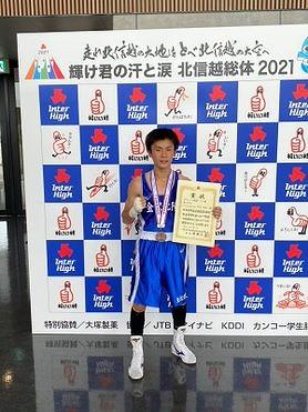 令和3年8月7日~13日に、福井県営体育館で開催された、令和3年度全国高等学校総合体育大会(インターハイ)ボクシング競技で、金沢北陵高校2年の平井胤充選手が、ピン級で銅メダルを獲得しました。