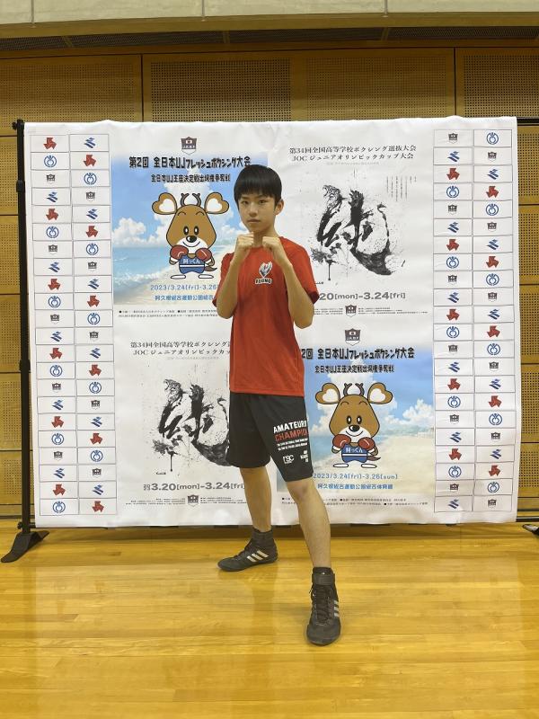 3月20日~24日に、鹿児島県阿久根市の阿久根市総合体育館で全国高等学校ボクシング選抜大会が開催され、本校2年生の近藤海人選手がライトフライ級の北信越代表として出場しました。結果は、1回戦で地元鹿児島県の選手と対戦し、ポイント負けでした。しかし、全国のブロック代表が参加するこの大会で対等に戦えたことで、普段の努力の成果が出てきていることを実感したと思います。今後も全国総体、国体での勝利をめざして、金沢北陵高校ボクシング部の主将として、部員を引っ張ってくれると思います。