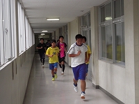 台風の接近に伴いグラウンドが使用不可のため本日は校舎内でのトレーニングをしました。