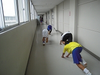 最後に雑巾リレーを行い、校舎が綺麗になる、選手は強くなるの一石二鳥なトレーニングを行いました。