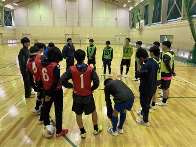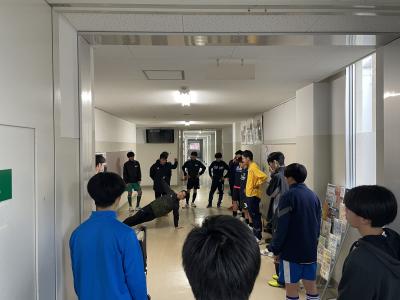 ↑伏見高校、寺井高校、松任高校サッカー部の選手たちとフットサルとサーキットトレーニングを行う様子