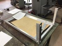 奥はアルミのLアングル(50mm×50mm×板厚5mm)を金のこで切断しました。