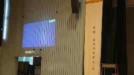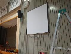体育館に行き、既存のステージ左の取り付け金具を利用し、製作した架台の取付確認をしました。