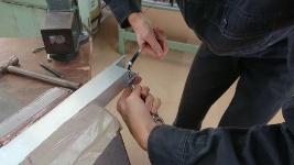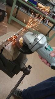 今日の難所。購入しておいた金具の爪の部分が大きいため、研削してサイズ変更。