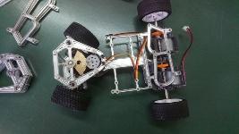ステアリング系統が盛大に干渉していて、ギヤとリンクが干渉していたり、リンクとアームが干渉していて25度しかステアリングが切れなかったり機能しません。リンク関連を図面化して詳細設計しなかったツケが出てきています。
