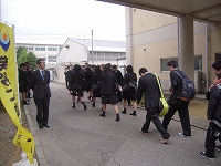 生徒会による挨拶運動が始まりました。今年度から11Hから順番に日替りで行うことにしました。あいにくの雨天でしたが、1年生のさわやかな挨拶が飛び交い、すがすがしい気持ちにさせてくれました。
