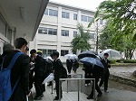 本日の挨拶運動は34Hが当番でした。雨の中朝から
