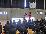 7限目に応援歌練習で校歌の練習をしました。生徒会の皆さんが前へでて