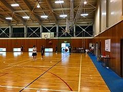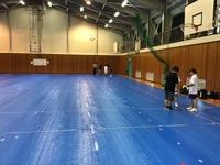 女子バドミントン部(コート半面)。シャトル拾いがとてもうまい先生。