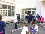 竹の樋の製作班は、「樋を支える足も竹で作る」と宣言して、苦しんでいました。