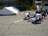 テントづくりも始まりました。今回は出展しない、ヒマなR&Dプロジェクト部のみなさん。
