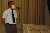 ここにも生徒会の先生が。先生の熱中症も心配です。第一体育館は卓球部とバドミントン部が養生しています。