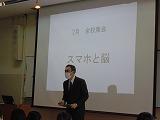 全校集会では学校長より「スマホと脳」というタイトルでスマホの使用時間が脳にどんな影響を与えるか、グラフなどを用いて分かりやすく説明していただきました。