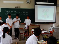 最後に、作成した資料をプロジェクターで投影して全体にプレゼンテーションしました。