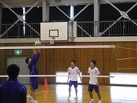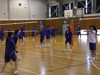 男女に分かれてパス・スパイクの練習