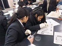 最初は抵抗感をもつ生徒もいましたが、次第に慣れ、意欲的に解剖・観察をおこなっていました。