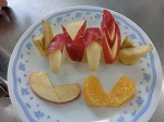 リンゴとバナナとはっさくの飾り切りに挑戦しました。