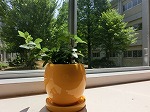 掲示板に展示しました。かわいい植木鉢も校内を装飾してくれています。