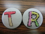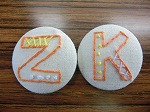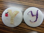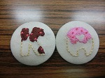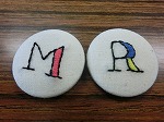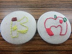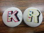イニシャルを刺しゅうして、くるみボタンにしました。次回は自由課題です。