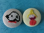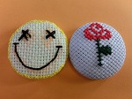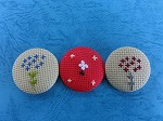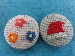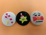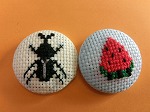 くるみボタンの自由課題です。ワンポイントや全体模様のものを作っています。