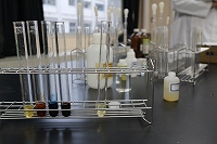 鉄イオンを含む水溶液に種々の試薬を加え、沈殿や呈色など特有の反応を確認しました。