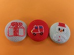 クリスマスや子どもの好きなテーマでくるみボタンをつくりました。これらは保育園に寄贈します。次回はクリスマスリースをつくります。