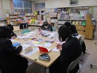 好きな本のキャッチコピーなどをカードに書き、本のとなりに置いて宣伝します。