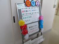 廊下に小さい本棚と返却ボックスを設置しました。横の掲示板には手作りPOPもあります。
