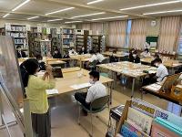 図書館の基本的な使い方と分類法の説明をしてから館内を自由に見て回る時間を設けました。