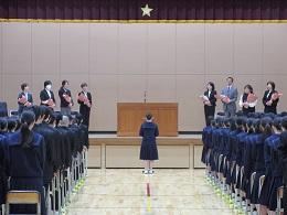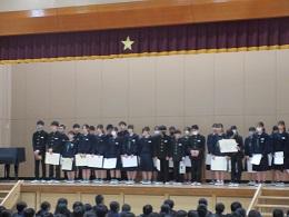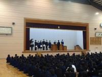 12月24日(水)に2学期の終業式が行われました。校長先生からは、3年生に向けて、進路実現に向けて頑張ってほしい、2年生には学校のリーダーとしての自覚をもってもらいたい、1年生には先輩になる準備を行うことなどメッセージがありました。生徒指導担当の先生からは、交通安全とネットとの付き合い方について注意喚起の呼びかけと2学期を終えて学校としての成果(行事への取り組み)と課題(周りへの気配りと思いやり、掃除に取り組む姿勢)についてお話がありました。