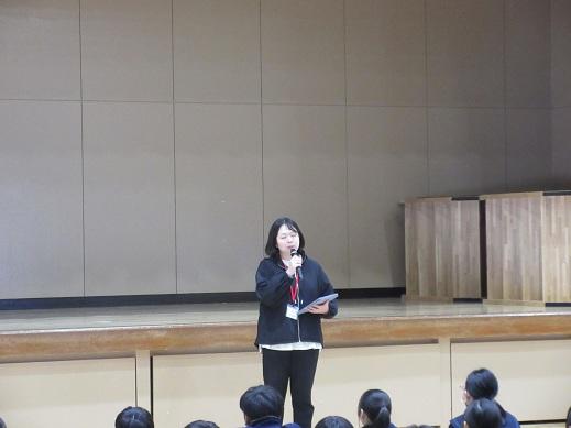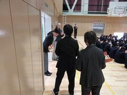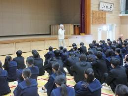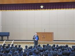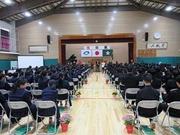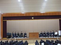 冬季休業前に各学年で学年集会が行われ、2学期の成果と3学期に意識して取り組んで欲しいことや、休みを過ごす上で大切なことについて先生方から説明がありました。生徒たちは先生方の話に静かに耳を傾け、自分自身を振り返っていました。