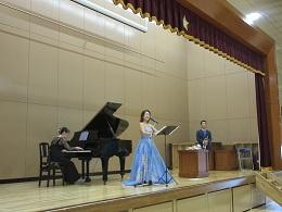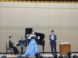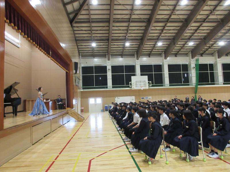 11月6日(木)に、白山市在住のプロ演奏家による「感性のびのびコンサート」を実施しました。トランペット奏者、ソプラノ・フルート奏者、ピアノ奏者の3名の方々が、白山市の豊かな自然に関する曲も盛り込みながら、1年生の生徒たちのために素晴らしい演奏を披露してくださいました。
