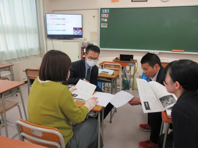 11月20(木)の放課後、教職員を対象にした道徳科の授業づくりに関する研修を行いました。石川県教員総合研修センターから3名の指導主事に来校いただき、授業づくりのポイントをご指導いただきました。生徒たちがクラスメートと交流し、自分の生き方について多面的・多角的に考えられるような授業を目指し、工夫をしていきたいと思います。