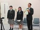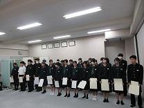 11月26日(水)に作品展・コンクールや部活動の成果を全校生徒で讃えました。また、表彰披露後、菊環羊羹の贈呈式が行われ、翠星高校の生徒の方から、生徒会長に菊環羊羹が贈呈されました。「菊環羊羹」とは、能登半島地震で被災した高校生が「栄養と水分た手軽に摂れるおいしい非常食を作ろう」と考え、老舗和菓子店の協力を得て、備蓄用羊羹として製造したものです。製造された経緯や羊羹に込められた思いなどを説明いただくとともに、全生徒に羊羹が配布されました、