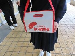11月4日(木)~5日(金)の朝に、生徒会が玄関に立って、赤い羽根募金を呼びかけています。寒い朝となりましたが、生徒会のメンバーは一生懸命声を出していました。皆さんのご協力をよろしくお願いします。