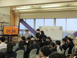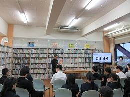 12月22日(月)の放課後、図書館でビブリオバトルが行われました。4名のバトラーが4冊の本「ナミヤ雑貨店の奇蹟」「地球の歩き方 タイ」「崩れる脳を抱きしめて」「硝子の塔の殺人」をそれぞれ紹介してくれました。その中から、「硝子の塔の殺人」がチャンプ本に選ばれました。バトラーは、推し本の魅力を、自分の言葉で分かりやすく説明してくれました。