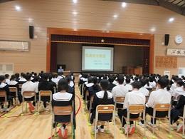 6月3日(水)に1年生は環境講演会を行いました。本校では毎年、全校生徒が近隣の徳光海岸で海岸ごみを拾う「クリーン活動」を実施しています。その一環として1年生は、白山市の環境課の方から徳光海岸のごみの量・種類、ボランティア活動について学び、何のために活動をするのかを明確にして取り組めるようにしています。自分たちの住む地域の環境について考える良い機会になりました。