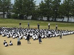 5月21日(水)に火災を想定した避難訓練を実施しました。全校生徒が静かに落ち着いてグラウンドに避難することができました。講評では、校長先生から、授業以外の場面(休み時間や部活動など)での避難経路や動きを確認するようお話がありました。また、千代野分署の方からは、静かにスムーズに避難が出来ていてとても良かった、避難する際のルールを覚えておくようにとアドバイスがありました。