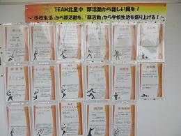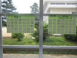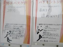 職員玄関近くに、2週間後となったブロック大会やコンクールや展示会などに向けて、各部からの意気込みと後輩と顧問の先生方へのメッセージが掲示されています。今までの練習の成果を発揮できるよう、生徒たちをサポートしていきます。